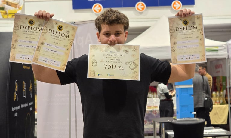 Zdobyliśmy nagrody na konkursie Smak Miodu 2026 w Poznaniu, w dwóch kategoriach, w tym Grand Prix za miód rzepakowy z pyłkiem.