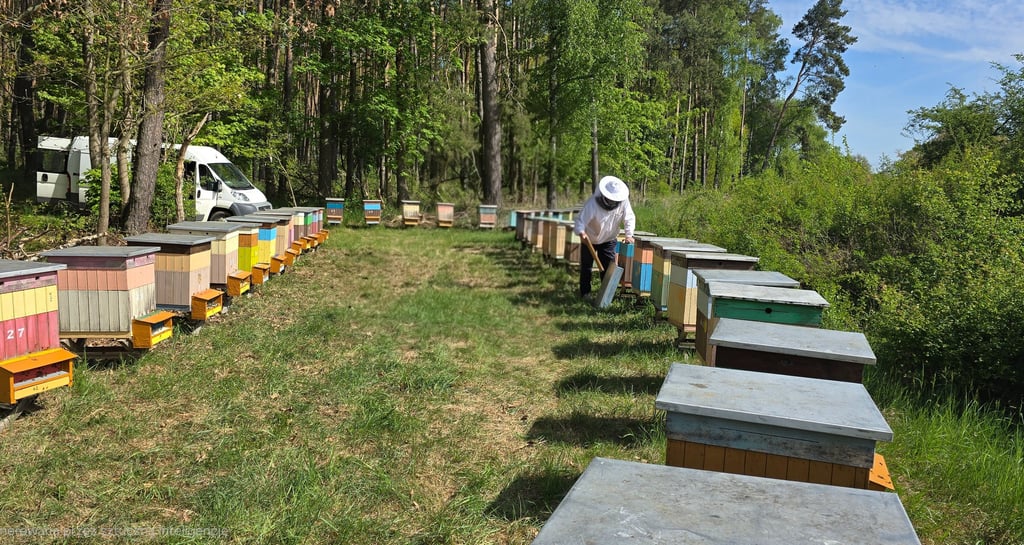 Pasieka Mikucki to rodzinne gospodarstwo z 250 rodzinami pszczelimi, prowadzone przez wnuka i dziadka.
